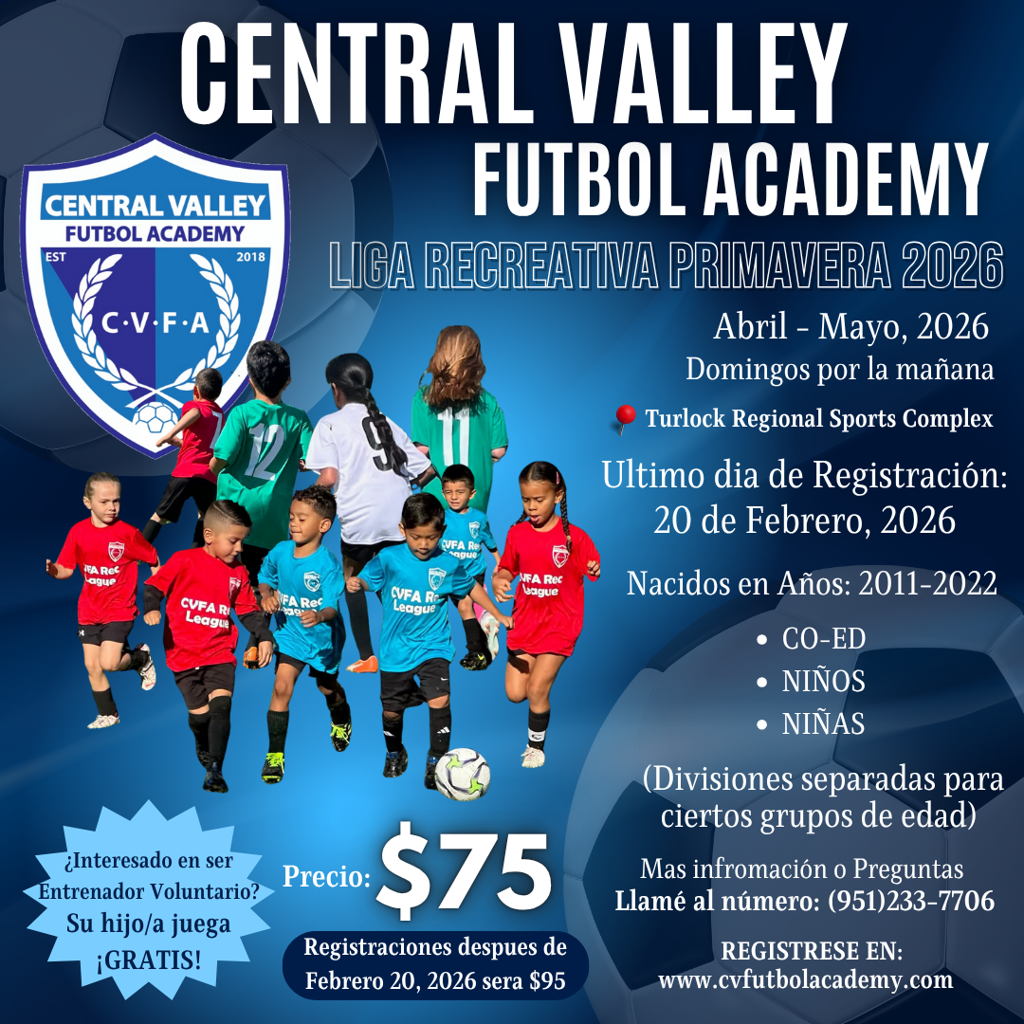 Central Valley Futbol Academy is excited to host another successful competitive tournament this upcoming Spring March, 2026.